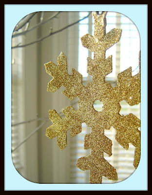 I used a friends Sissix Big Kick cutter to cut my giant snowflakes, but I could have just as easily handcut stars of simpler snowflakes. Holiday tree shapes would be pretty also.